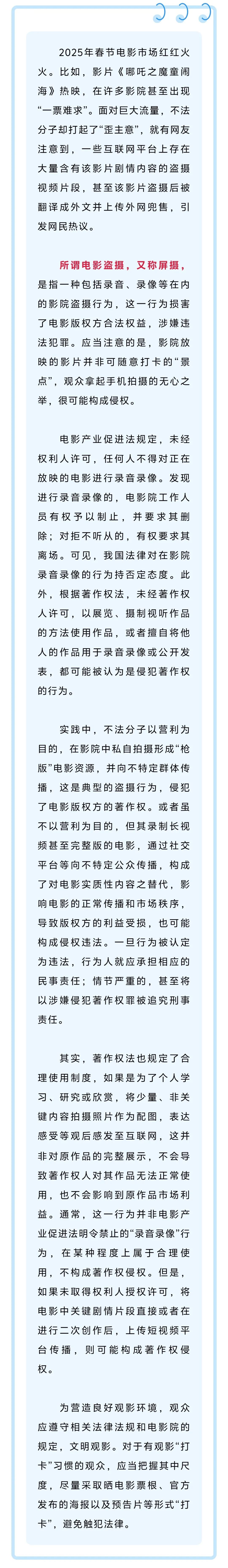 盗摄属违法,观影应规范
